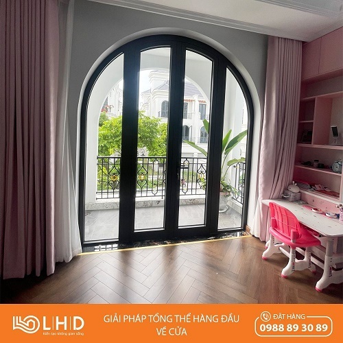 Hình ảnh công trình: Sử dụng cửa nhôm Xingfa nhập khẩu chính hãng màu đen: chủ đạo sử dụng cửa vòm, cửa mở quay. Tạo cho công trình có lối kiến trúc vừa hiện đại, vừa cổ điển, rất sang trọng.